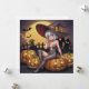 Häxan, med sitt silverhår och busiga gröna ögon, satt på toppen av en jack-o-lantern, hennes siluett tydlig mot den purpurfärgade skymningen. Hennes överdimensionerade hatt, prydd med en enorm orange rosett, kastade en skugga över hennes lilla kropp. Ett lekfullt leende spred sig över hennes läppar när hon såg ut över den pittoreska byn, vars siluett tecknades mot nattens himmel. - Hon var en varelse av magi och bus, en trollkvinna med ett hjärta av guld. I kväll, Halloween, var hennes favorit tid på året. Luften var tjock av förväntan, slöjan mellan världarna tunnades ut. Hon kunde känna magin röra sig, nattens energi pulsera genom hennes ådror. - Medan hon satt där, försjunken i tankar, kom en plötslig vindil och rörde om i hennes hår. Hon skrattade, hennes skratt ekade genom den tysta natten. Vinden var hennes följeslagare, hennes förtrogna. Den bar hennes viskningar, hennes hemligheter, över den vida
