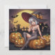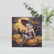 Grönögd Halloween-häxa på Jack-O-Lanterns Julkort