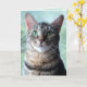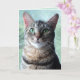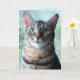 Denna underbara grönögda tabbykatten är perfekt för att förmedla en speciell hälsning till en vän eller nära och kära!