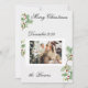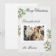 Skicka varma välgångsönskemål med detta julkort med grönska och bär, som har mjuka akvarellblad, diskreta röda bär och en texturerad pappersliknande bakgrund. Det centrerade fototillägget gör att ditt familjefoto sticker ut vackert samtidigt som designen förblir naturlig och festlig.