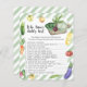 "baby som odlas lokalt är på väg". Fira med den här vattenfärgen vegetabiliskt temat babydusch party! Gurkor, lök, äggplanta, zucchini, gult och röda tomater, radisor, morötter, peppar, peppar av hett, peppar av söt gult, ärter och kål, broccoli och sockerbetor på en styckningsdel. Vattenfärgad ekologisk skörd.