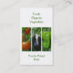 För marknadsföra trädgårdsmästarar eller frukt- och grönsakproducenter, en visitkort med 3 vertikala foto av tomater, aubergineet och paprika.