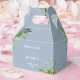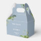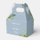 Denna eleganta botaniska blomsterbröllopsfavoritbox med grönska kan anpassas med din information i chic typografi på en dammig blå bakgrund. Designad av Thisisnotme©