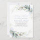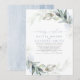 Romantisk kalligrafi och drömmig grönska dammig blå kvällshälsning bröllopsinbjudningar