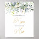 Denna design har en akvarellillustration av grönska lövverk och eukalyptusblad. Detta kort/stativskylt är perfekt för att lägga till lite kul och spänning till din bröllopsfest eller möhippa. Överst på grönskebilden - grönaktig och gyllene effektkonfetti.