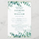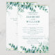 Populär nu design för boho Bröllopsprogram med eukalyptus grönska bladverk och vävt in i falskt guld ram