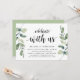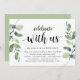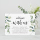 Modern Rustik Grönska Eukalyptus, Svart Skript-tema inbjudningskort (med korttitel: fira med oss). Det är perfekt för din bröllopsflyktreception / efterbröllopsfirande. Lägg till dina detaljer i matchande svart teckensnitt / bokstäver.