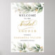 Grönska Eukalyptusblad guld boho välkomstskylt affisch 24x36 för Baby Shower, Kontakta mig för matchande föremål eller för anpassning, Blush Rosor ©