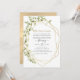 Trendig vattenfärgblad 50-års bröllopsdag inbjudan med guldgeometrisk ram och elegant typografi.
