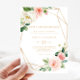 Denna grönska & guld geometriska 50-års bröllopsdagsinbjudan är perfekt för en enkel bröllopsdag. Designen har vackra vita, rosa och rosabukett handmålade rosor och en touch av grönska, som pryds av guldgeometriska ramar, som inspirerar till konstnärlig skönhet.
