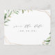 Rustik vattenfärg botanisk lövverk grönska och falska guld folie blad och geometrisk ram, med trendig "spara datum"-skrift, enkel och elegant, bra för grön och guld sommar rustik bröllop, vår botanisk trädgård bröllop.