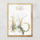 Vackert bordskort med botaniskt motiv - en akvarellillustration av grönska lövverk och gyllene siffernummer. Bord 16. Vänligen kontrollera alla tillgängliga nummer