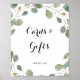 Denna grönska lövverk kalligrafi kort och gåvor skylt är perfekt för ett rustikt bröllop eller brudvisning. Designen har handritade botaniska gröna eukalyptus grenar och blad.