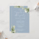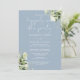 Med känslig blomstergrönska kan denna trendiga dammiga blå "Happily Ever After" bröllopsinbjudan till fest personaliseras med din speciella evenemangsinfo och bröllopslöften på baksidan, i modern, elegant typografi. Perfekt för alla bröllopsfiranden, inklusive förnyelse av löften, 1-årsfirande, efter-fester eller om man var tvungen att ha ett litet bröllop och nu är redo att festa igen. Designad av Thisisnotme