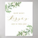 Vattenfärg Grönska och vita blommor Hur många kyssar affisch | 'Hur många kyssar?' affisch med vattenfärg illustrationer av grönska och vita blommor med elegant guldsrift. Roligt och elegant spel för brud shower och baby shower. Matchande artiklar finns tillgängliga.