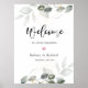 Välkomstskylten "The Greenery Welcome Wedding Sign Poster" är en elegant dekorativ detalj som är utformad för att hälsa gäster välkomna när de anländer till en vigsel eller bröllopsfest. Den har mjuk botanisk grönska som eukalyptusblad, vinrankor eller ömt bladverk som inramar välkomstmeddelandet med en fräsch, naturlig estetik. Designen passar vackert ihop med rustika, trädgårdsinspirerade, bohemiska eller minimalistiska bröllopsteman och skapar ett lugnt och inbjudande första intryck. Skylten är tryckt på högkvalitativt papper eller kartong och visas vanligtvis upp på en staffli, ramstativ eller entréskylt. Texten innehåller ofta en hjärtlig välkomst tillsammans med parets namn och bröllopsdatum för en personlig