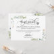 Berätta för familj och vänner den fantastiska nyheten om din bröllopsdag med detta eleganta "Vi gifte oss"-kort. Känn dig fri att lägga till ditt eget meddelande, vårt är bara ett exempel. Handskrivna kalligrafidetaljer och utsökt akvarell blomstergrön design som inramar ditt meddelande. Lövverk och blommor i salvia, grönt, dammig blå, marinblå och koppartoner. Baksidan av kortet har vackra ömtåliga hörngrönsaklement och elegant dekorativ logotyp i mitten med brudens och brudgummens fullständiga namn.
