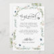Dela de fantastiska nyheterna om din bröllopsdag med familj och vänner med detta eleganta "Vi gifte oss"-annonskort. Lägg gärna till ditt eget meddelande, vårt är bara ett exempel. Designen har moderna handskrivna kalligrafidetaljer och utsökt vattenfärggrönska i salvia, grönt, blått och koppartoner runtomkring dina detaljer. Baksidan av kortet har diskreta hörndetaljer med blomstergrönska och elegant dekorativ logotyp med brudens och brudgummens fullständiga namn i mitten.