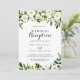 Denna grönska vita höst blommande bröllopsinbjudan är perfekt för en rustik efterbröllopsfest. Designen har eleganta akvarell vita peonior med grön lövverk. RSVP-kort säljs separat, eller så kan du lägga RSVP-informationen på baksidan eller botten av kortet.