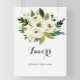 Denna grönska vita höstblommiga favors skylt är perfekt för ett rustikt bröllop eller brudvisning. Designen har eleganta akvarell vita peonior med grön lövverk.