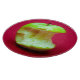 Foto av ett stort äpple med grönt mot röd bakgrund. Den stora bitan har tagits ut ur äpplet.