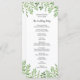 Naturtema bröllopsprogram kort med eleganta gröna akvarellblad. Perfekt för vårgröna bröllop och moderna botaniska trädgårdshändelser.