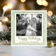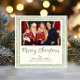 Den här vackert designade julkortet har en mjuk, krämfärgad bakgrund omgiven av en klassisk grön, vågformad ram och utsökta julmotiv. I mitten visas ditt favorit familjefoto, omgivet av lager på lager av dekorativa ramar som ger djup, charm och en touch av vintage-sophisticering.