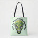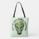 Få ut resor från den här världen med den här roligten och kör snabbt i väskan. Den här väskan är ett oundgängligt verktyg för att bära alla dina ördnadsfulla och kosmiska skatter. Den har en djärv design av en grönt som ler på ett galet sätt, tänder på visningen och den lekande bildtexten "Ut ur den här World Shopper".