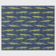Slå ihop dina gåvor i vild stil med det här mönstrade pappra som är perfekt för någon som kärlek krokodiler. Den här mönstrade presentfigurationen har realistiska illustrationer av krokodiler i stil i oliv grönt läge mot en marin blå, mönstrad bakgrund.