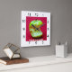 Den stora bitan har tagits ut ur grönten äpple. Röd bakgrund, vit klocka ansikte. Lustigt anpassade med kvadratiska väggar. Du kan ändra bilden och ändra eller ta bort malltexten. Ha roligt.