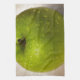 Stängningsvy för ett enda äpple av grönt. Äpplet är blöt och är tungt täckt med droppar av rent vatten. Texturerad fotografi