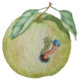 Grönt äpple med lustig maggot i den illustrationen t-shirt