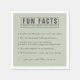 Lägg till en roligt i cocktail-timmen eller Rehearsal-middagen med dessa pappra servetter. Designen har ett huvud i fetstil "Roligt Facts Om Bride and Groom", sedan en lista med 5 roligtar fakta i ett serif-teckensnitt och en skriptcalligrafi namnteckning över en eukalyptus grönt bakgrund. Du kan ändra bakgrunden till färg för att matcha bröllop-temat. Designad att samordna med vår "Elegant Eucalyptus Collection". Anpassa med din information med hjälp av den mall som fält medföljer om du behöver hjälp med att klicka på knappen nedan.