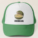 Bilden är generativ innehåll. Jag hade bilden av en durian, så jag tänkte varför inte kasta den på en hatt. Och eftersom en durian är grönt trodde jag att det skulle vara på en grönt hatt. Sen sätter jag namn Durian under frukten.