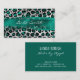 Teal grönt och silver faux ombre foil och svart leopardpunkt med motsvarande glitter-foliepensel för ditt namn. Modern safari-design för hennes småföretag. Affärskort med gyllene glam.