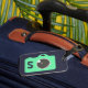 Grönt av popkonst - kamera - blå monogram bagagebricka