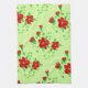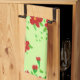 Köks- eller badhandduk i grönt med lätt selleri och röd blommigt mönster. Färsk och klar köks- eller badkarkonstruktion.