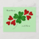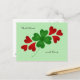 Ett vykort för söt med en tursam schack med röda hjärtan på en mint grönt bakgrund och rum för text.