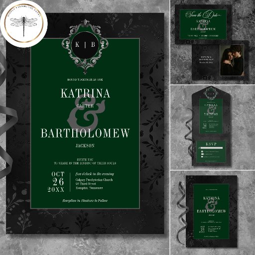 Gå in i en värld av elegans i mörken med vår fängslande gotiska bröllopsinbjudan. Inställd mot en bedövande svart-på-svarta-satäng vintage blommigt tapet, utstrålar denna inbjudan en luft av mystik och tidlös charm. Överst klämmer en vintage grått, vin och svart kartouche parets första initialer och tillför en gnutta regal plöjare till designen. Grönten för textrutans bakgrund i rik blir en liten aning av färg. Med en åldras som utstrålar sofistikering är denna inbjudan en perfekt som blandar gammal allure och contemporary. Förstå det förflutnas och inbjudan era gäster att bevittna ett kärlek som överskrider tiden med den här fängslande gotiska bröllopsinbjudan. Skapat av Farmhouse Press.