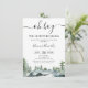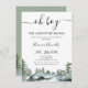 Grönt Äventyr Börjar Wilderness Baby Shower Inbjudan äventyr börjar med en inbjudan till babydusch med en vildmarkscen för vattenfärger med gräs träd och berg och en dekorativ modern kalligrafi. Underbar för en pojkes vinterbabydusch.