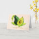 Ett grattis på födelsedagen-kort med en pulserande vattenfärgmålning av en fullt avokado parad med en halv avokado sitta på en säng av löv. Verkligen med kraftig grönt och gult gör denna frukt kom till livet. Ställ in på en subtil persikobakgrund för färgaden.