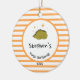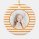 Elegant, modern och söt baby-fotojulprydnad på orange rand mönster. Den här mallen innehåller en bra illustration av Grönt baby dinosauer som sover under guld gultens stjärnor med anpassningsbar Baby namn. Vänd om du vill visa ett vackert foto från baby i den röda rand cirkeln ram. Underbar för både pojke och flicka. Perfekt för alla säsonger!