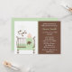 Bara en söt inbjudan till babydusch eller ett meddelande om födelse eller adoption i nyfödd bebis ger en vacker vektorbild av lycklig baby i crib. Finns i blått, rosa eller grönt med brunt accent färger. Anpassningsbar färger finns på begäran. © Cocoa Studio