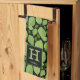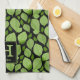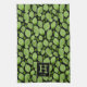 Grönt Basil Löv Herb Mönster Botanical Monogram kökshandduk. Gröntens basilika lämnar i mönster på svart bakgrund. Lägg till ditt monogram och namn.