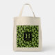 Grönt Basil Löv Herb Mönster Botanical Reusable Tote Bag. Gröntens basilika lämnar i mönster på svart bakgrund. Lägg till ditt monogram och namn.