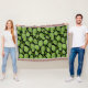 Grönt Basil Löv Herb Mönster Throw Blanket. Gröntens basilika lämnar i mönster på svart bakgrund.