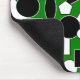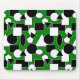 Den här musknappen har en Bauhaus-design av trianglar, cirklar, rektanglar och pentagoner i svartvitt på fält i grönten.