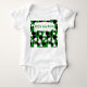 Den här karosseri för baby har en Bauhaus-design av trianglar, cirklar, rektanglar och pentagoner i svartvitt på en fält av grönten.