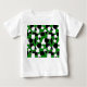 Baby t-shirt har en Bauhaus-design av trianglar, cirklar, rektanglar och pentagoner i svartvitt på en fält av grönten.