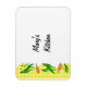 En anpassningsbar köksmagnet med en gräns av grönt bönor och fritationsplagg på gult gingham, som kontrollerades i mönster med en liten bit gyllene orange och en liten grönt. Klicka på Anpassa om du vill lägga till ditt namn eller meddelande.